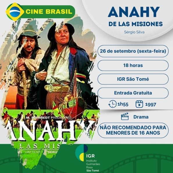 O Instituto Guimarães Rosa São Tomé tem a satisfação de convidar para sessão do Cine Brasil, dedicada à exibição do premiado filme ” Anahy de las Misiones ” (1997), dirigido por Sérgio Silva.