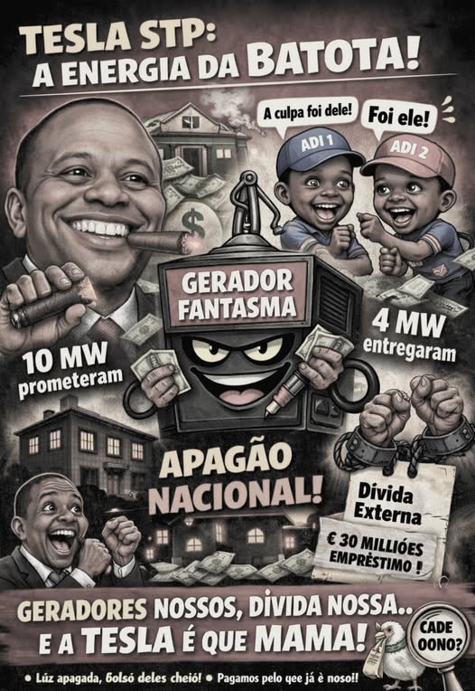 #TeslaSTP#GeradoresFantasma#ApagõesDaCorrupção#STPJustiça#VergonhaNacional#LuzParaOPovo#HipocrisiaDasManifestações
