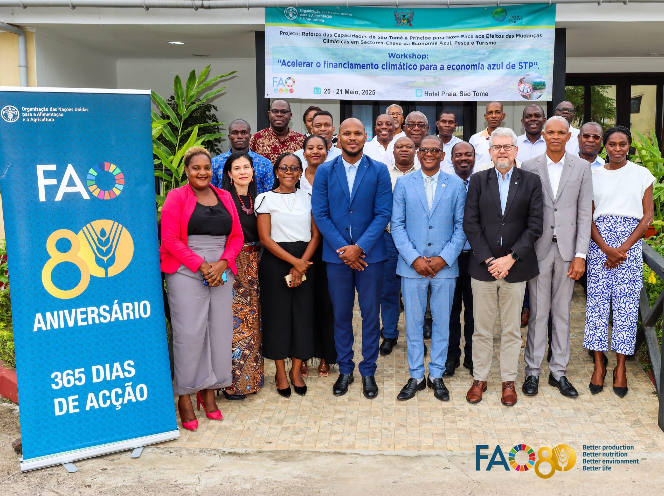 No âmbito desse projeto, o escritório da FAO em São Tomé e Príncipe, em parceria com o Ministério da Economia e das Finanças, realizou um Workshop sob lema, “Acelerar o financiamento climático para a economia azul de STP”, que contou com a participação de mais de 15 entidades públicas com uma abordagem multissetorial.