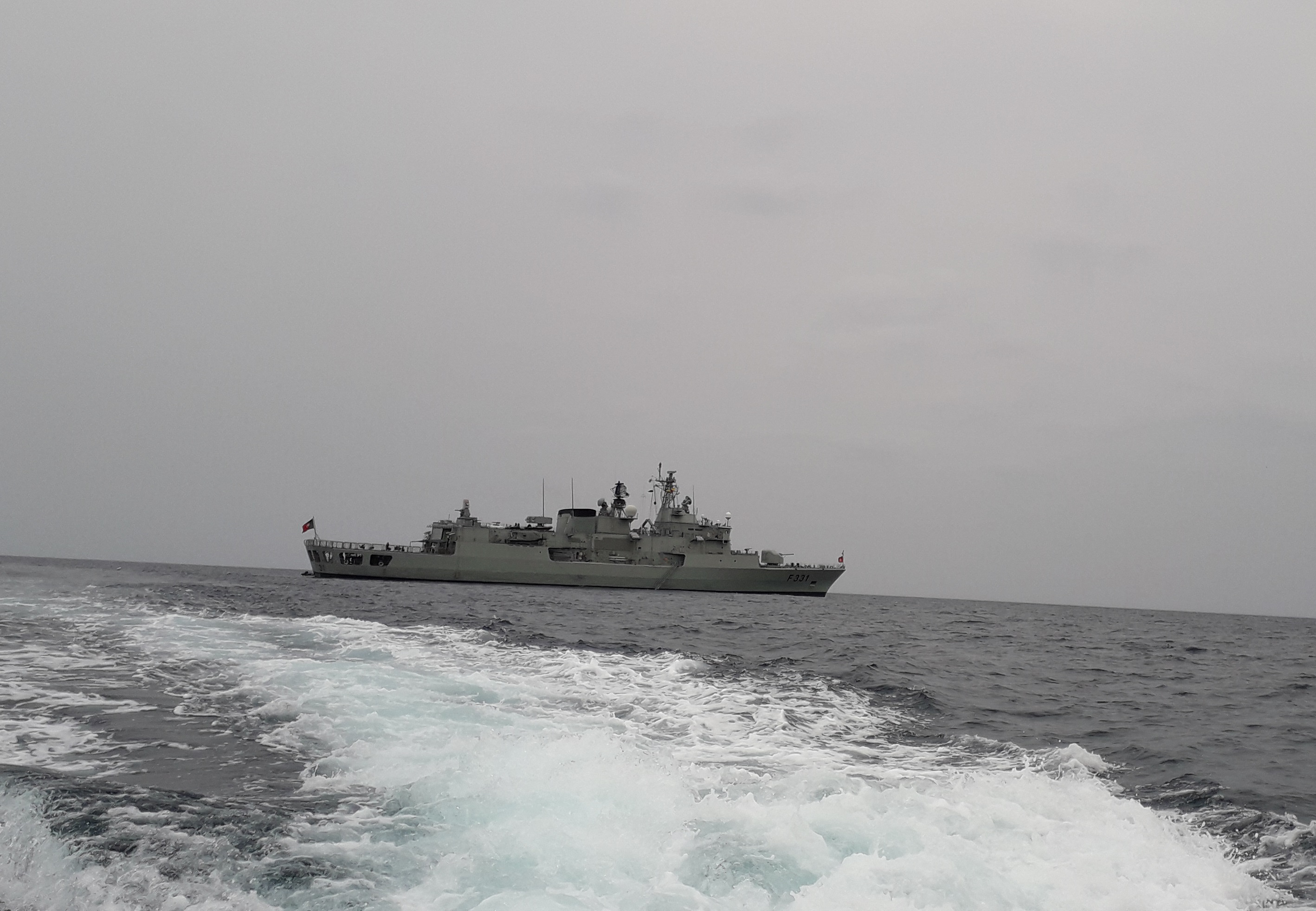 O Navio de guerra, envolveu-se em exercícios de combate com a guarda costeira de São Tomé e Príncipe, e o mesmo vai acontecer nos próximos dias em Angola, a sua próxima escala.
