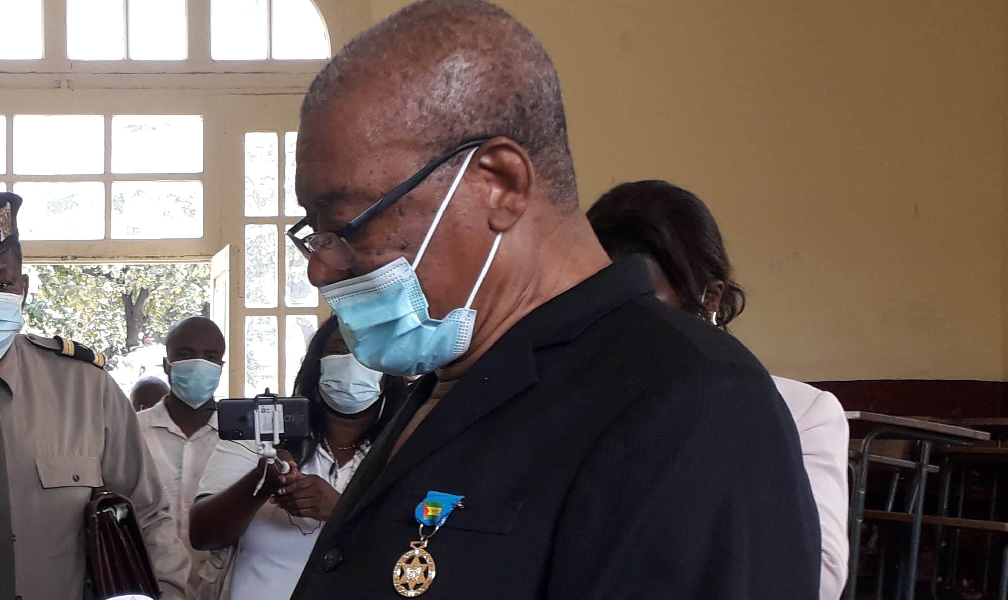 Evaristo carvalho, Presidente da República Cessante, exerceu o seu direito de voto na escola primária Dona Maria de Jesus, na cidade de São Tomé.
