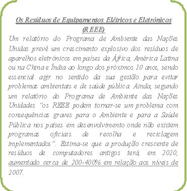 Para agravar esse cenário, é de notar que a tipologia dos resíduos produzidos é hoje muito diferente, que com o desenvolvimento do País tenderá a aumentar (conforme apresentado no exemplo dos REEE).