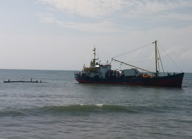 Mias um navio para Estado Santomense se apoderar dele. Estamos cheios de sorte. Navios vêm dar a costa como se fossem lulas. Os órgãos competentes já estão preparados para se apoderarem do navio e o festim vem depois.