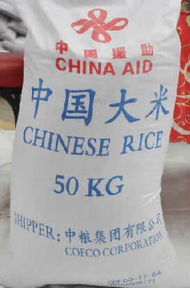 No quadro do reatamento das relações entre os dois países em Dezembro de 2016, o Governo pediu a China ajuda em arroz. 1000 toneladas de arroz, em sacos de 50 quilos, já foram desembarcados e armazenados nas instalações do gabinete de gestão das ajudas.