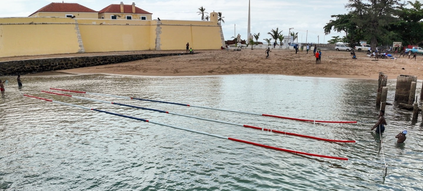 Mas a transformação não se faz apenas de infraestruturas. Faz-se também de pessoas. E é nesse espírito que apoiamos o projeto “São Tomé a Nadar”, uma iniciativa da Associação Portuguesa de Treinadores de Natação – Componente Social (APTN) e da Federação de Natação de São Tomé e Príncipe (FNSTP). A ACA, empresa responsável pela obra, concebeu uma forma de possibilitar as aulas de natação, dando a oportunidade de ensinar dezenas de crianças santomenses a nadar, e de ministrar o curso de monitores de natação, para que o projeto seja apropriado no País.